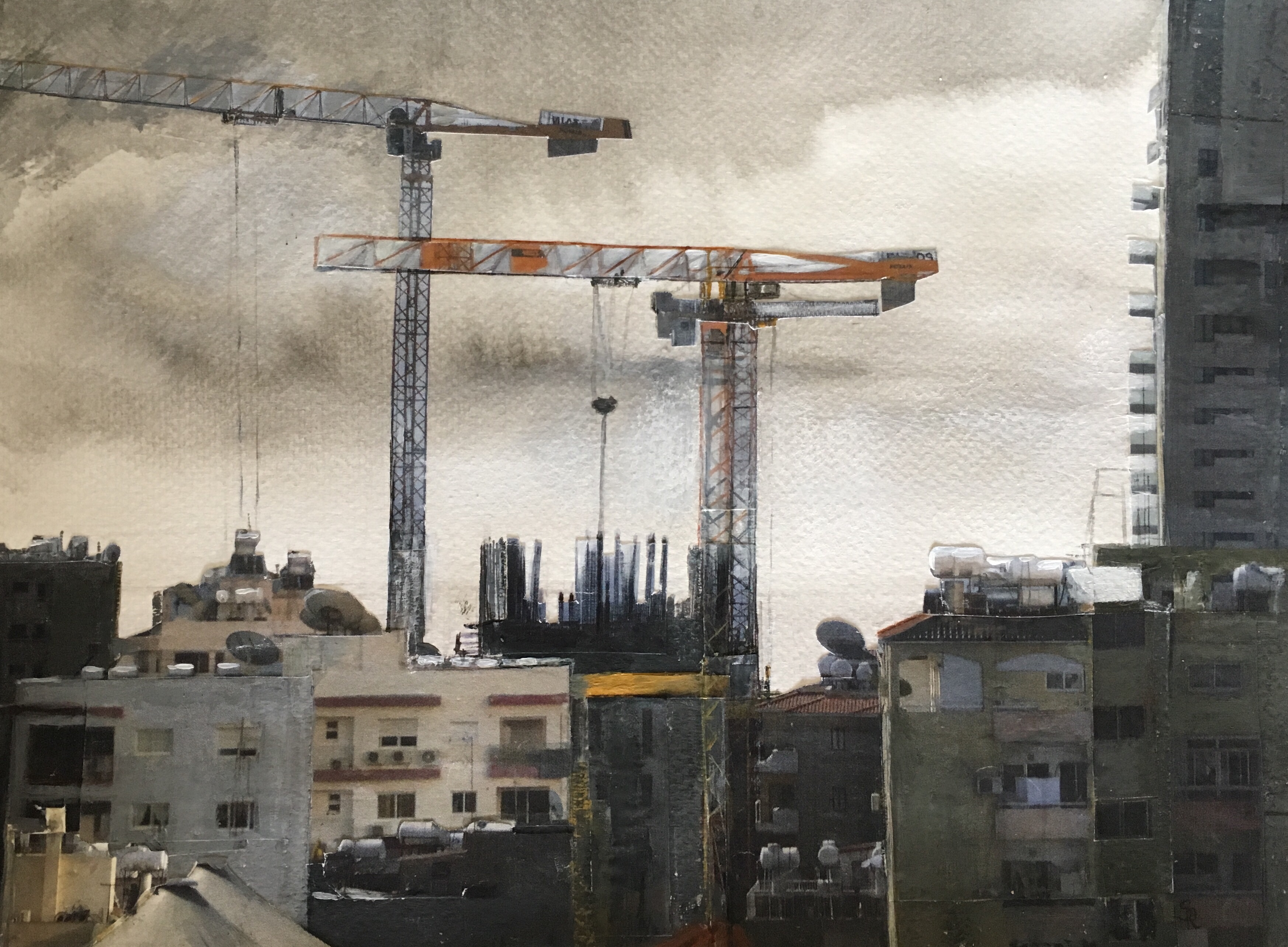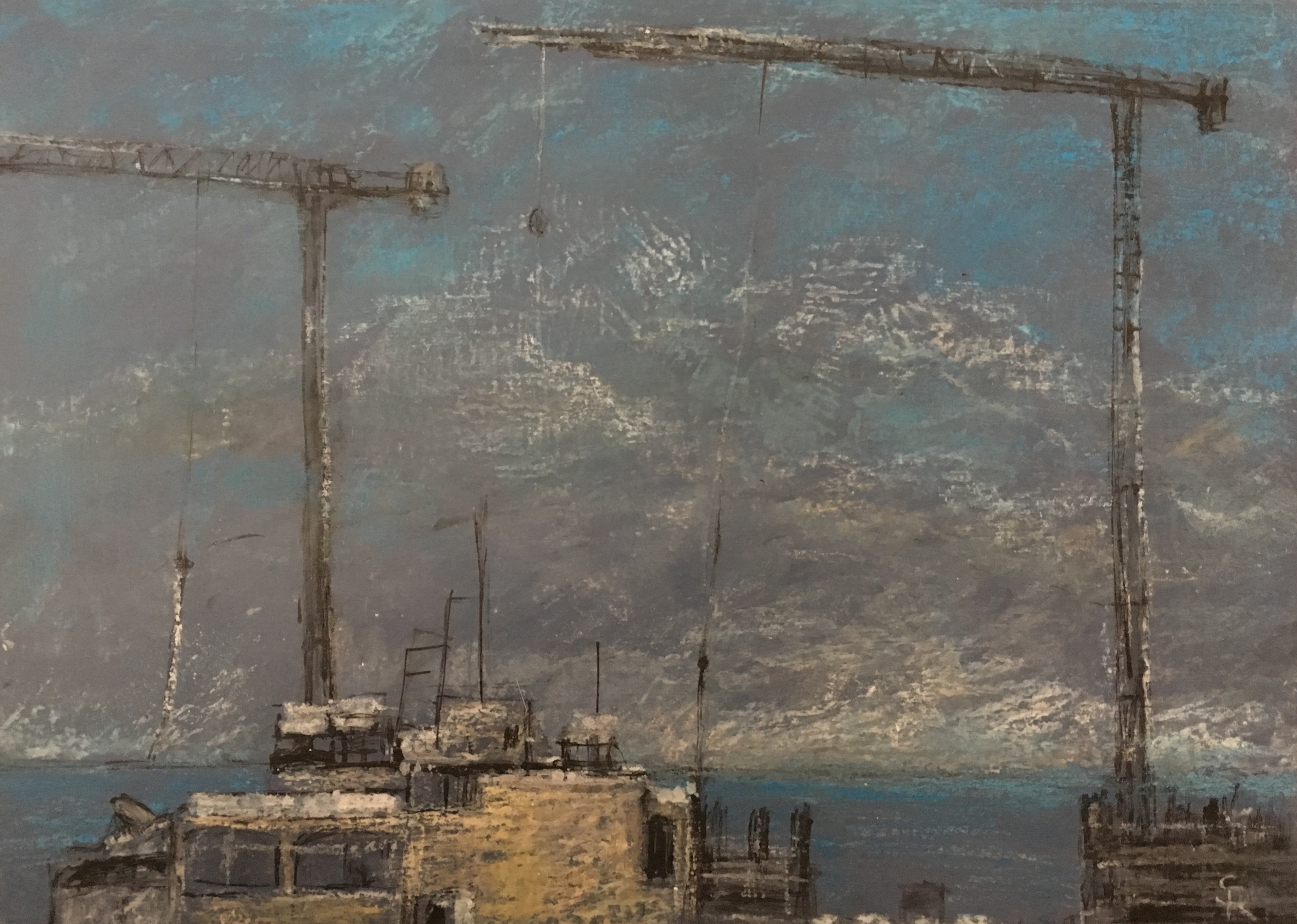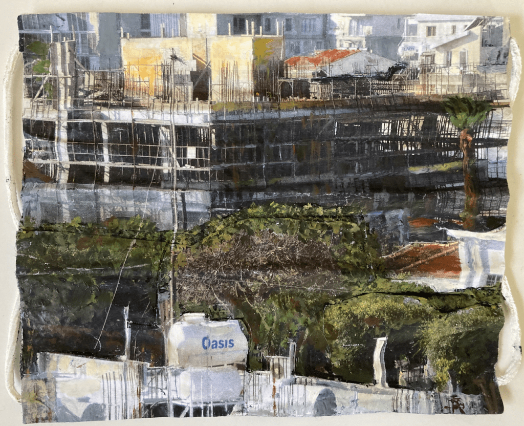 ” ‘A Raven’s View’, is a continual documentation in drawings and paintings of my surrounding changing townscape.”