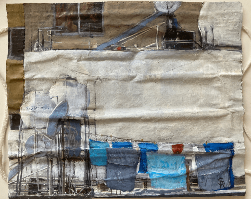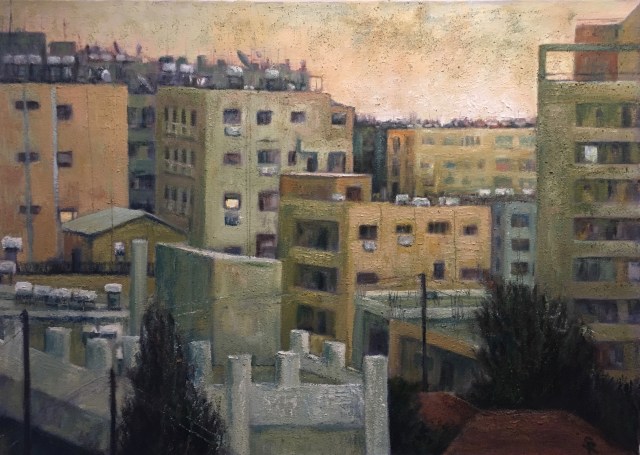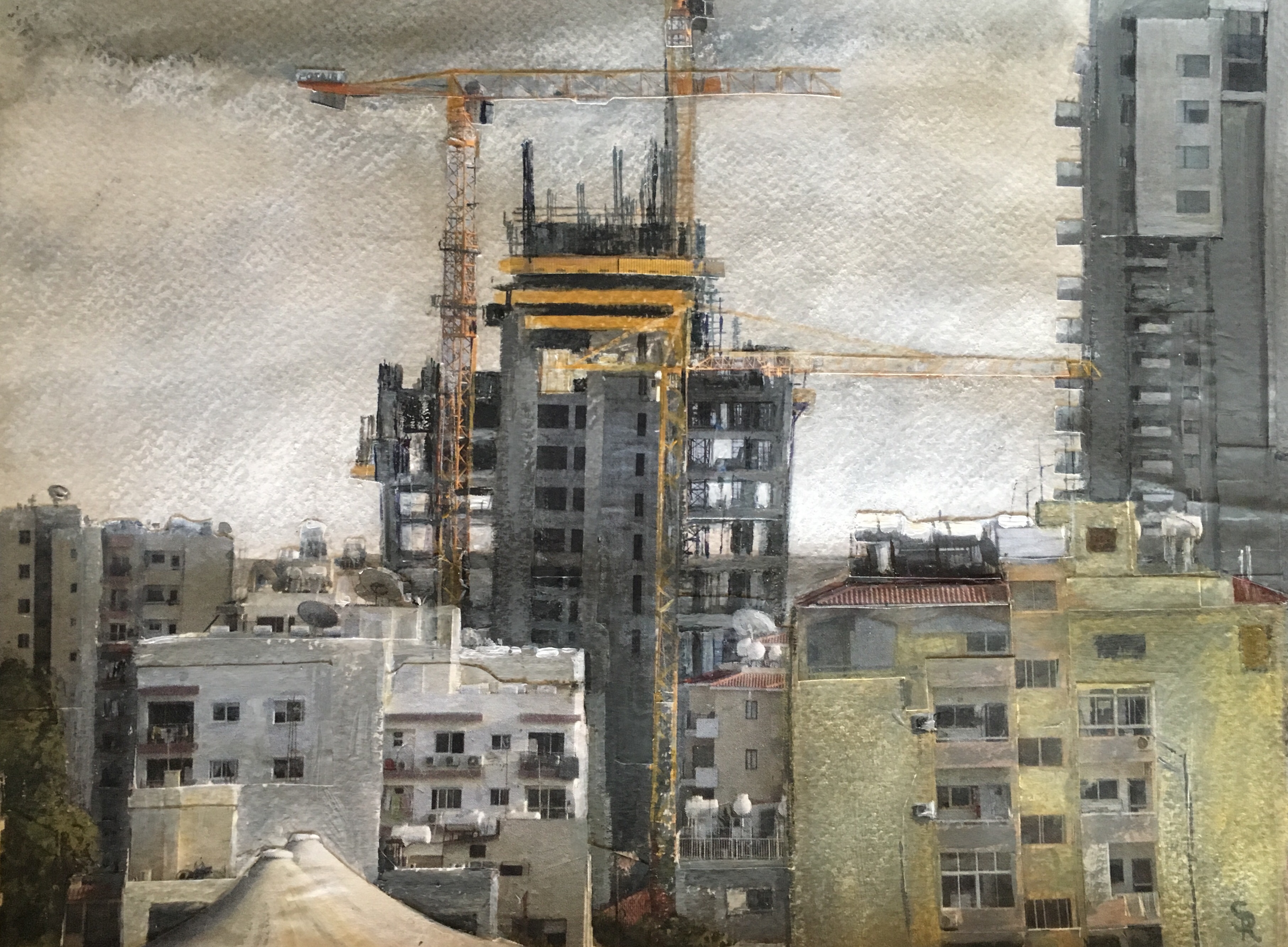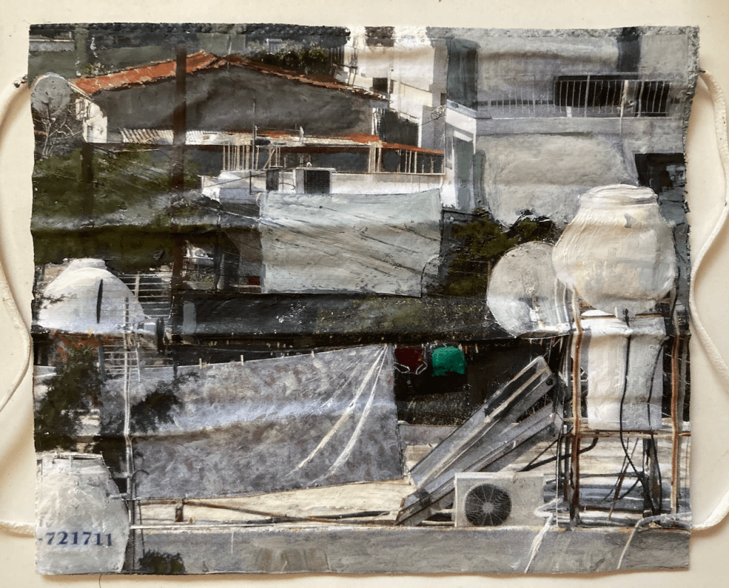 ” ‘A Raven’s View’, is a continual documentation in drawings and paintings of my surrounding changing townscape.”